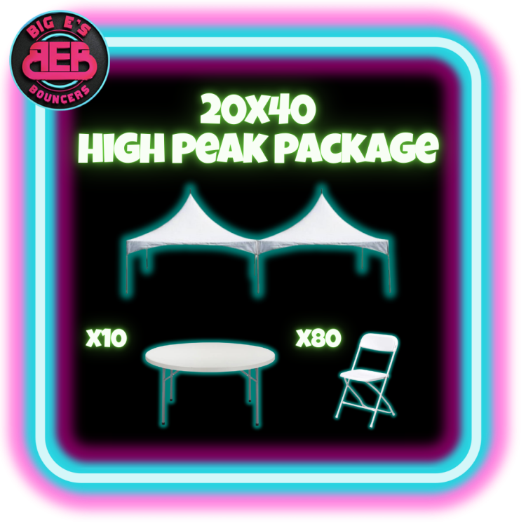 20x40 High peak tent20x40 High peak package:20x40 High peak tent1Dropdown13203135_25802431100 Transform your outdoor event with our 20' x 40' High Peak Tent, a stunning combination of elegance, durability, and versatility. Ideal for weddings, graduation parties, corporate events, backyard celebrations, and community gatherings, this premium tent delivers a beautiful atmosphere with reliable protection from the elements.