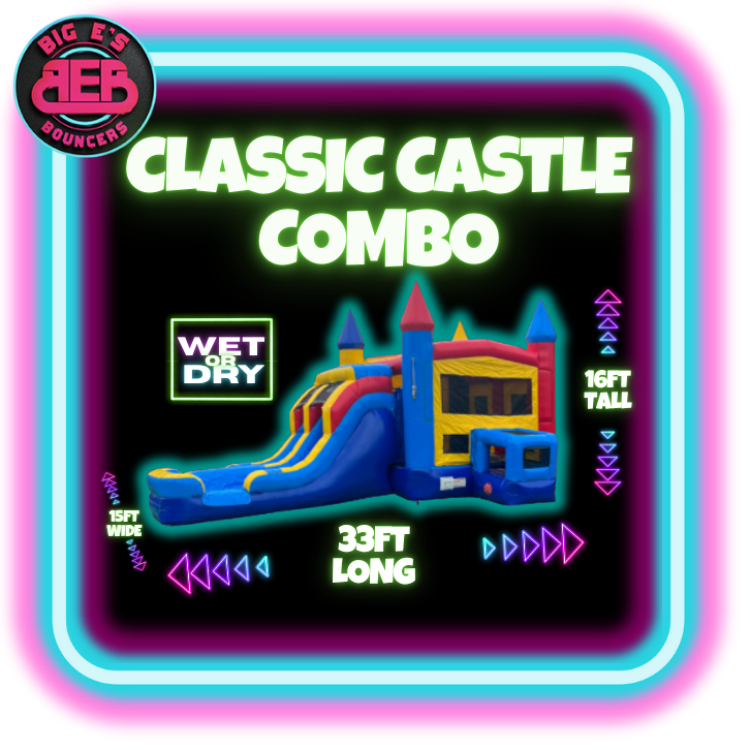 Classic Castle XL Combo Dry or wetXl combo party package:Classic Castle XL Combo Dry or wet102237305_2237283_16309310100 Looking for the inflatable that truly has everything? The Multi Water Combo is a full-blown adventure unit featuring a bounce house, dual lane water slide, climbing area, basketball hoop, and a cushioned splash landing. It’s the perfect all-in-one inflatable for birthday parties, school events, church gatherings, and backyard celebrations across Crestview, Laurel Hill, Baker, Holt, and surrounding Florida Panhandle areas.